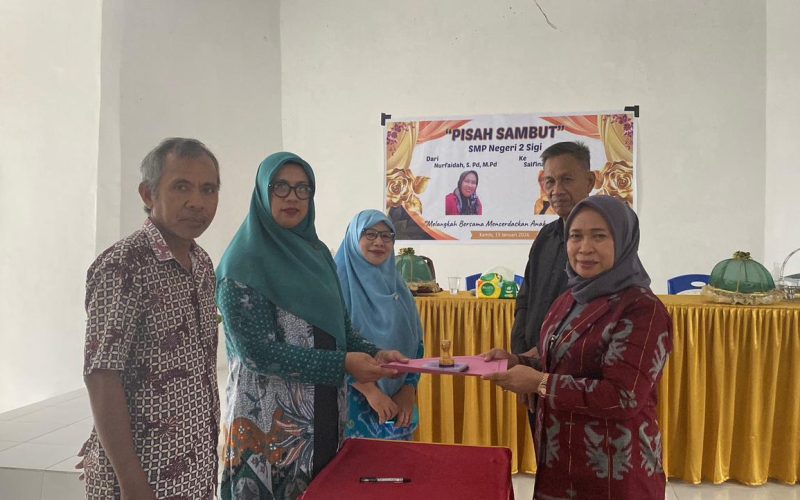 Sigi – Bertempat di Aula SMP Negeri 2 Sigi pada tanggal 15 Januari 2026, telah dilaksanakan kegiatan pisah sambut Kepala Sekolah dari pejabat lama, Nurfaidah, S.Pd., M.Pd., kepada pejabat baru, Hj. Salfina, S.Pd., M.Pd., yang berlangsung secara khidmat dengan dihadiri oleh seluruh dewan guru, staf Tata Usaha, perwakilan Komite Sekolah, serta Koordinator Wilayah Kecamatan Dolo Barat. Dalam sambutannya, diungkapkan apresiasi mendalam kepada Ibu Nurfaidah yang telah mendedikasikan dedikasinya selama 11 bulan terakhir dalam menjaga stabilitas dan kualitas pembelajaran setelah masa purna bakti Bapak Imron, S.Pd., M.Si. Momentum ini bukan sekadar seremoni pergantian jabatan, melainkan menjadi simbol penguatan sinergi kolektif bagi seluruh warga sekolah untuk terus berinovasi dan memastikan keberlanjutan prestasi akademik maupun karakter siswa di bawah kepemimpinan yang baru.